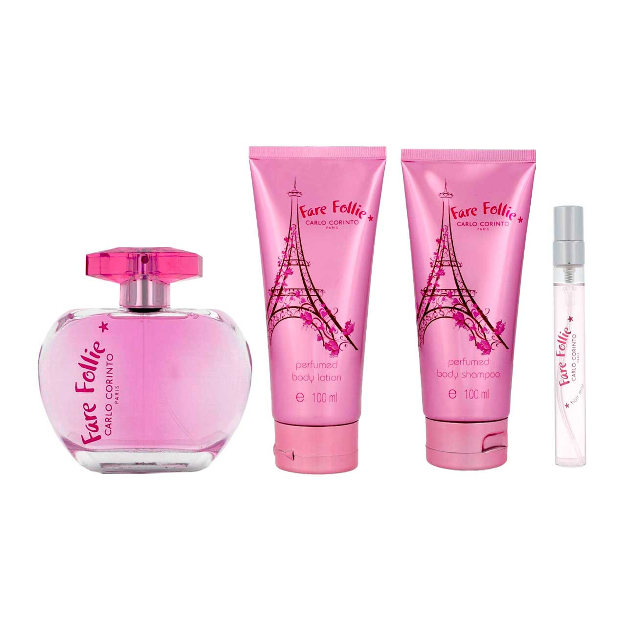 Fare Follie SET 4 Piezas Dama EDT 100ml + Gel de Ducha 100ml + Locion Corporal 100ml